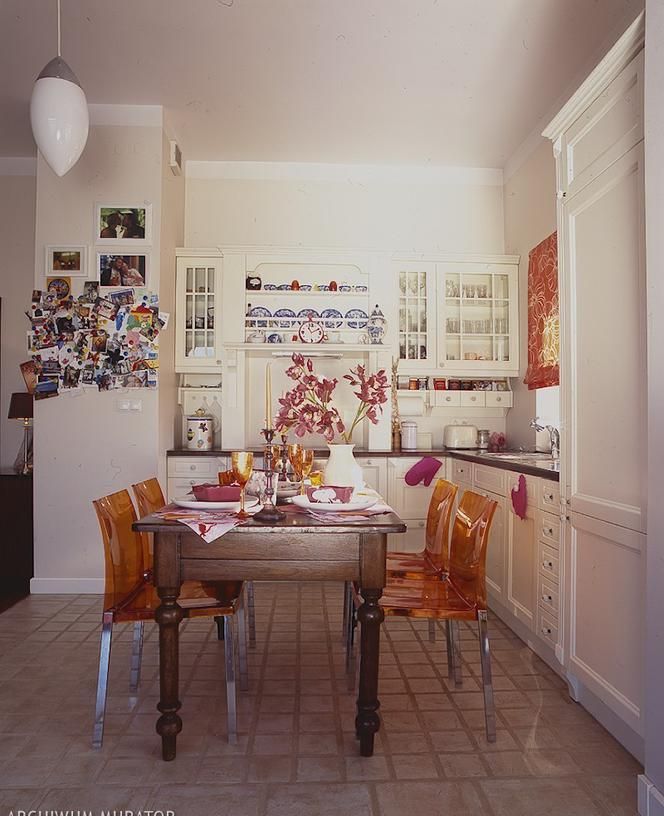 V anglické kuchyni dominuje nábytek z přírodních materiálů. Nemůže tedy chybět masivní dřevěný stůl a židle, které budou barevně odkazovat na kuchyňský nábytek.